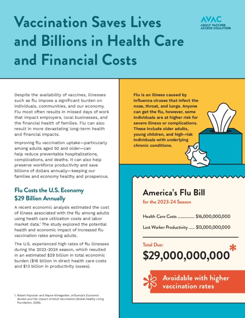 Fact Sheets Benefits of ImmunizationFebruary 4, 2026Study: Influenza’s Economic Burden and the Impact of Adult Vaccination